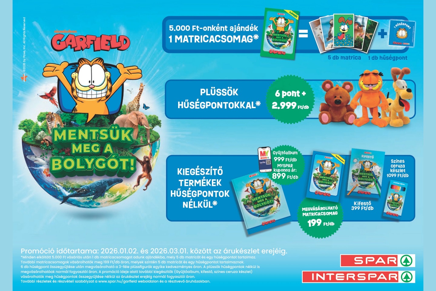 Garfield, a gyerekek és felnőttek közös kedvence ismét visszatér a SPAR és INTERSPAR áruházakba: a „Mentsük meg a bolygót!” matricagyűjtő promóció a népszerű rajzfilmfigurával hívja közös kalandra a családokat, ezúttal a megszokottnál még gazdagabb élményekkel.